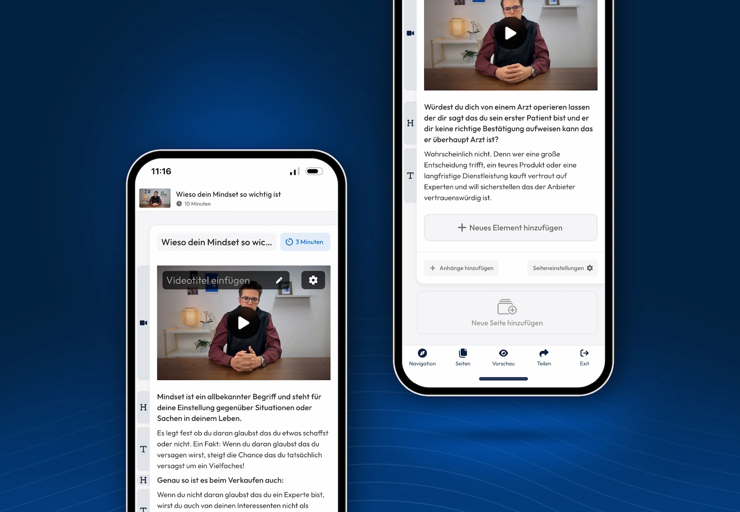 Lernende können sich auf dem Smartphone intuitiv durchnavigieren und Inhalte wie Videos, Audios, interaktive Inhalte und mehr ansehen und damit interagieren. Auch Feedback kann direkt von dem Handy abgesendet werden und auch alle Abgaben können am Smartphone erledigt werden.